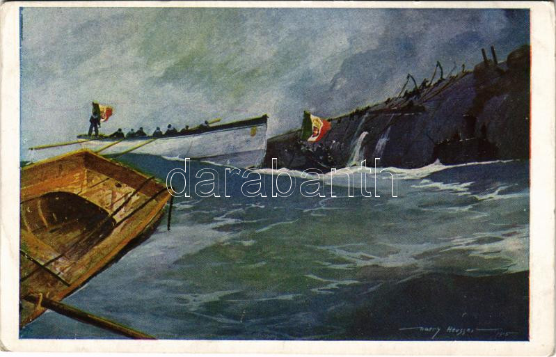 Rettung der Bemannun des ital. Panzerkreuzers "Amalfi". K.u.K. Kriegsmarine / WWI Austro-Hungarian Navy, Italian Armored cruiser. Offizielle Postkarte des Österreichischen Flottenvereines zu Gunsten des Kriegsfürsorgeamtes, des Kriegshilfsbüros und des Roten Kreuzes s: Harry Heusser (EK)