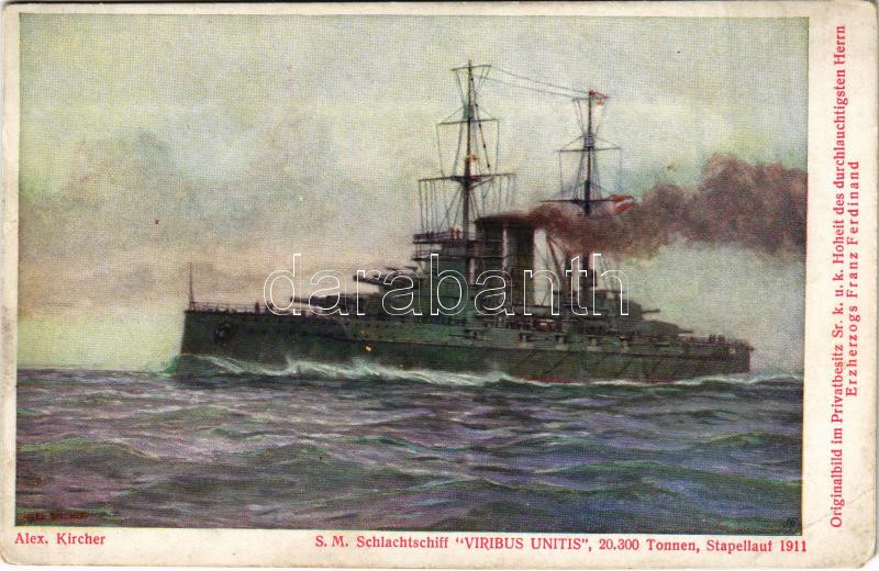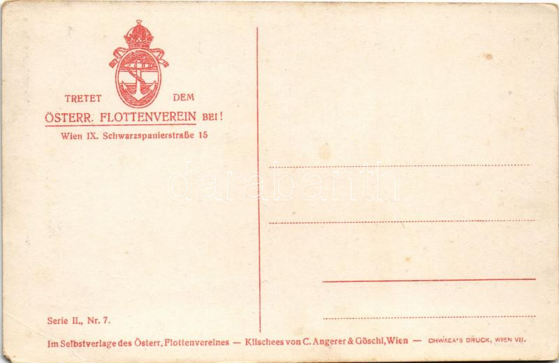 SM Schlachtschiff "Viribus Unitis". Im Selbstverlage des Österr. Flottenvereines Serie II. Nr. 7. / SMS Viribus Unitis az Osztrák-Magyar Haditengerészet Tegetthoff-osztályú csatahajója / Austro-Hungarian Navy K.u.K. Kriegsmarine SMS Viribus Unitis Tegetthoff-class dreadnought battleship s: Alex Kircher (EK)