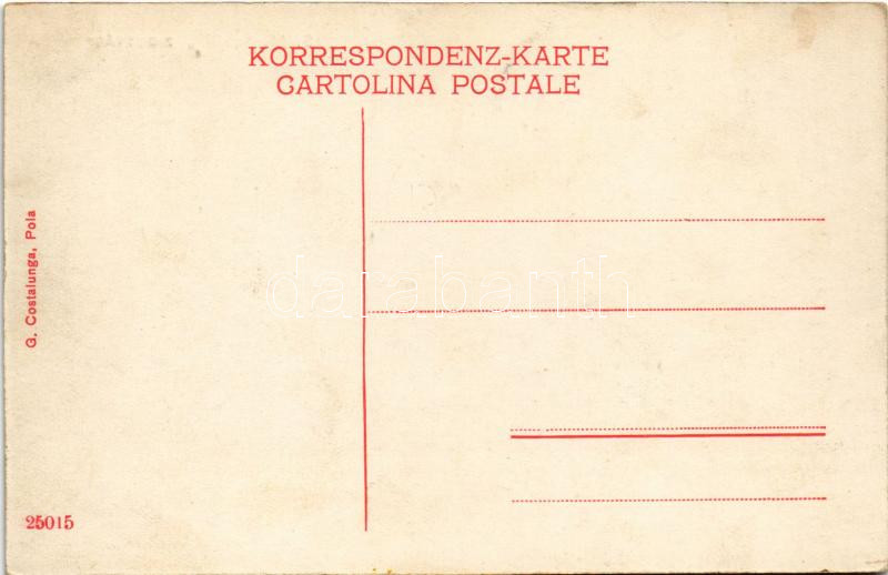 Leírás: SMS SZIGETVÁR Osztrák-Magyar Haditengerészet Zenta-osztályú védett cirkálója / K.u.K. Kriegsmarine / Austro-Hungarian Navy SMS Szigetvár Zenta-class protected cruiser. G. Costalunga Pola