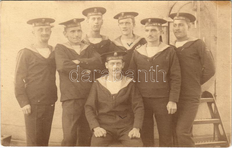 Leírás: SMS Viribus Unitis az Osztrák-Magyar Haditengerészet Tegetthoff-osztályú csatahajó matrózai / K.u.K. Kriegsmarine Matrosen / Austro-Hungarian Navy Tegetthoff-class battleship's mariners. photo (EK)