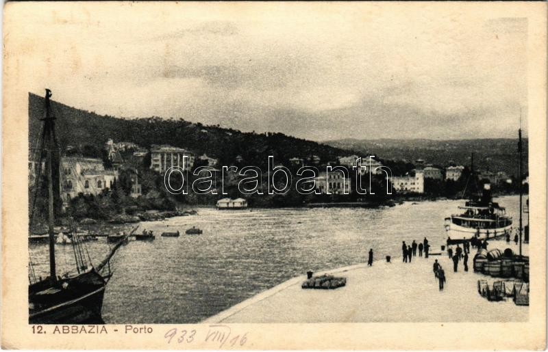 1933 Abbazia, Opatija; Porto / kikötő / port (ázott sarok / wet corner... https://www.darabanth.com/hu/472-Gyorsarveres/472.0/Kepeslapok/Horvatorszag~1500010/1933-Abbazia-Opatija-Porto-kikoto-port-azott-sarok-wet-corner~II2536519