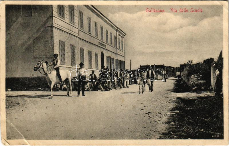 Galizana, Gallesano; Via delle Scuole / street view, school. Dep. Giovanni Fabris, Fot. R. Marincovich + "K.u.k. Sappeurbataillon Nr. 6. 3. Kompagnie" (EB)