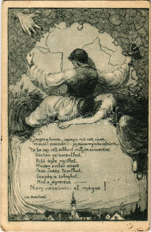 1923 "Idegen a bírónk, iszonyú mit rótt ránk... Nem veszünk el mégse!" Kiadja a "Szózat" Magyarország Területi Épségének Védelmi Ligája napilapja / "We shall never perish!" Hungarian irredenta propaganda s: Péczely Antal (EK)