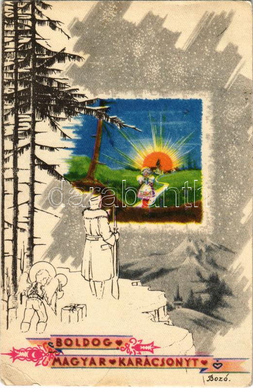 Leírás: Boldog Magyar Karácsonyt! / Hungarian irredenta Christmas greeting art postcard s: Bozó (EK)