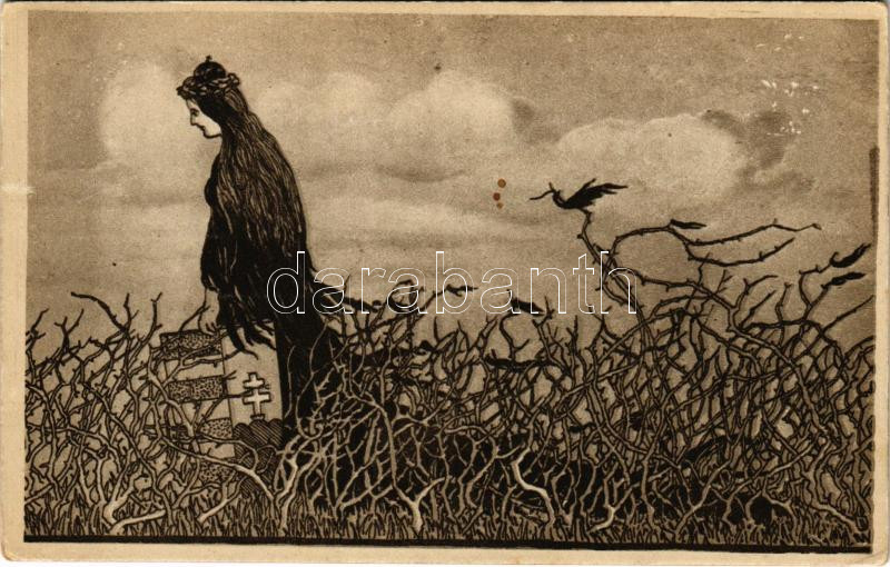 Tövises úton vándorol Hungária ezer év óta. Kiadja a "Szózat" Magyarország Területi Épségének Védelmi Ligája napilapja / "Hungary since a thousand years is treading her thorny way" Hungarian irredenta propaganda art postcard, Trianon s: Wéber József (Rb)