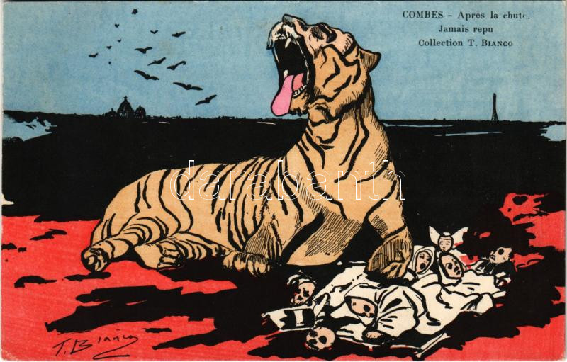 Combes - Apres la vhute, jamais repu / Első világháborús olasz gúnyrajz Émile Combes-ről, Dreyfus-ügy. Judaika / WWI Italian mocking propaganda, Dreyfus affair. Judaica s: T. Bianco (fl)