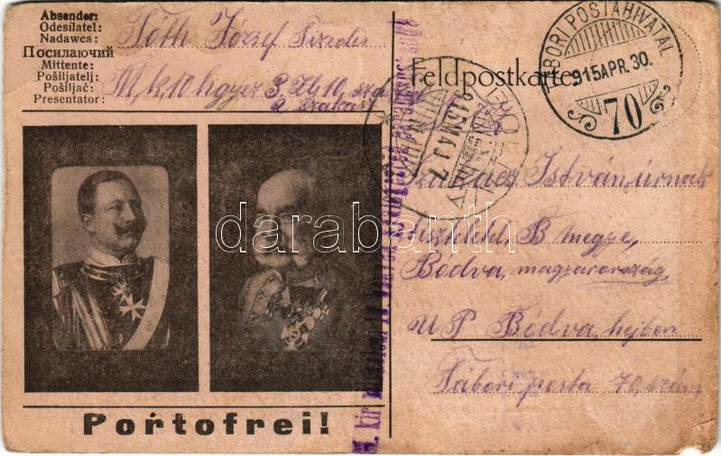 1915 II. Vilmos és Ferenc József / Wilhelm II and Franz Joseph. Portof... https://www.darabanth.com/hu/472-Gyorsarveres/472.0/Kepeslapok/Katonai~1500057/1915-II-Vilmos-es-Ferenc-Jozsef-Wilhelm-II-and-Franz-Joseph-Portofrei-Feldpostkarte-fa~II3195565