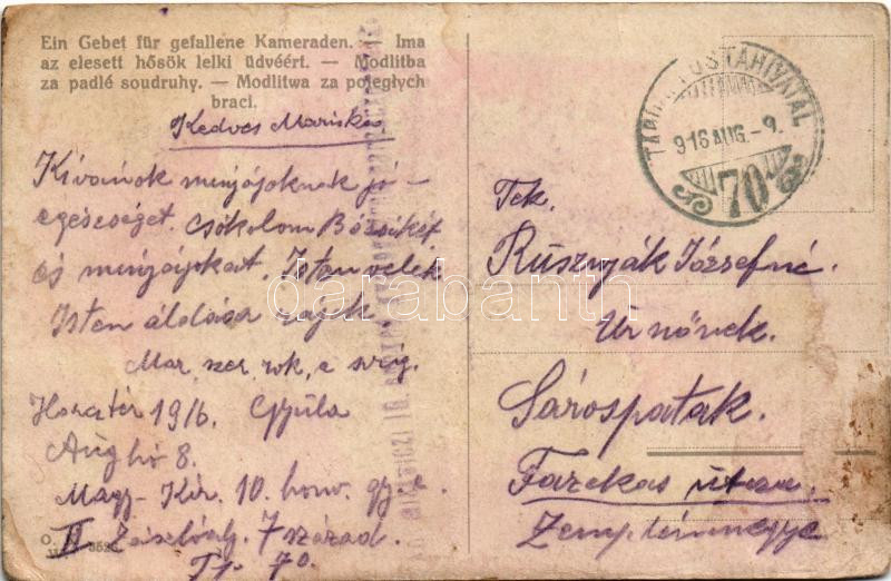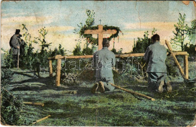 1916 Ima az elesett hősök lelki üdvéért, első világháborús hősök temetője katonákkal / WWI Austro-Hungarian K.u.k. military cemetery, soldiers praying (szakadás / tear)