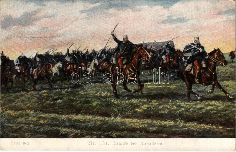 Attacke der Kavallerie. Offizielle Karte für Rotes Kreuz, Kriegsfürsorgeamt, Kriegshilfsbüro K.F.A. Serie 46/2. Nr. 131. / WWI Austro-Hungarian K.u.K. military art postcard (EK)