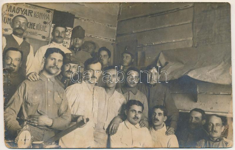 Osztrák-magyar katonák orosz hadifogságban, "Szibériai magyar konyha" / WWI Austro-Hungarian K.u.K. military, POWs (prisoners of war) in Russia, "Siberian Hungarian kitchen". photo (kis szakadás / small tear)