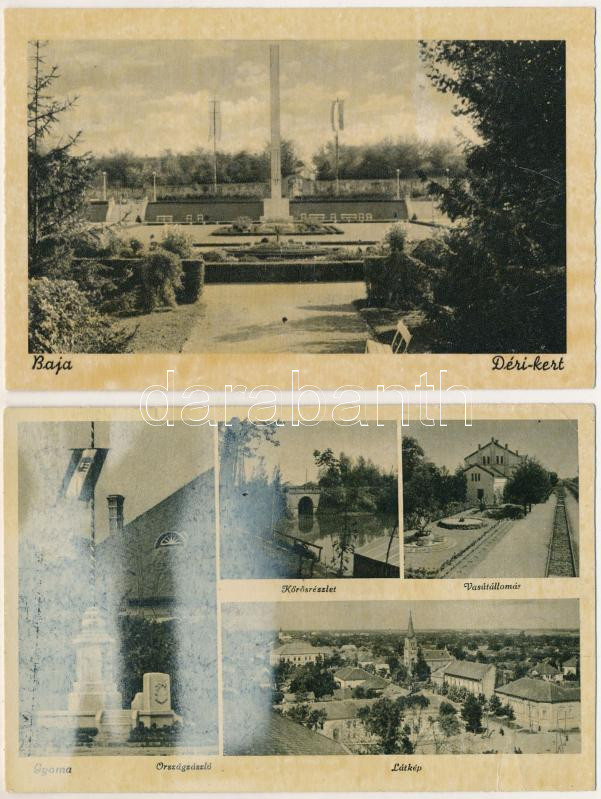 2 db Régi magyar város képeslap Országzászlóval, Baja, Gyoma / 2 pre-1... https://www.darabanth.com/hu/472-Gyorsarveres/472.0/Kepeslapok/Kepeslap-Tetelek~1500004/2-db-Regi-magyar-varos-kepeslap-Orszagzaszloval-Baja-Gyoma-2-pre-1950-Hungarian-town-view-~II3181671