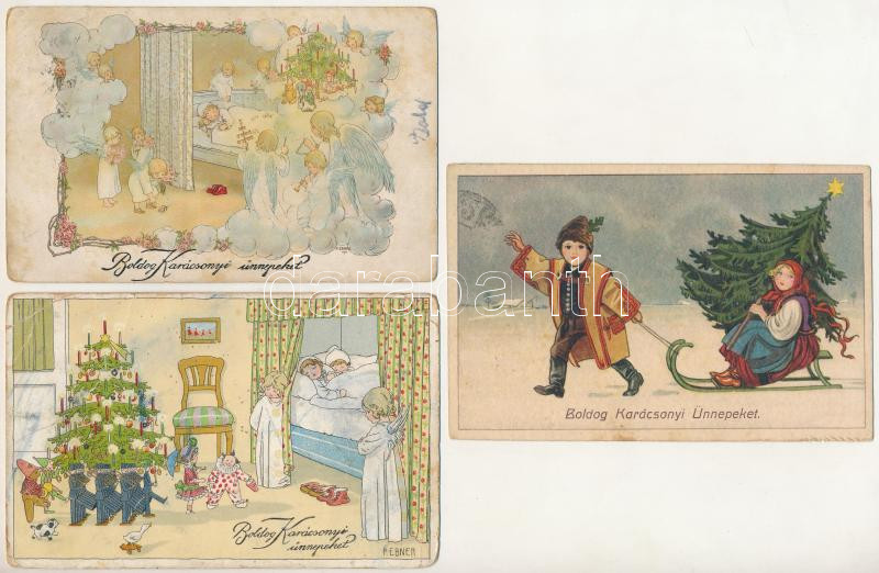 Leírás: 3 db RÉGI karácsonyi üdvözlő képeslap vegyes minőségben / 3 pre-1949 Christmas greeting postcards in mixed quality