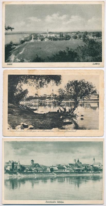 Leírás: 3 db RÉGI magyar város képeslap: Szentendre, Süttő / 3 pre-1945 Hungarian town-view postcards
