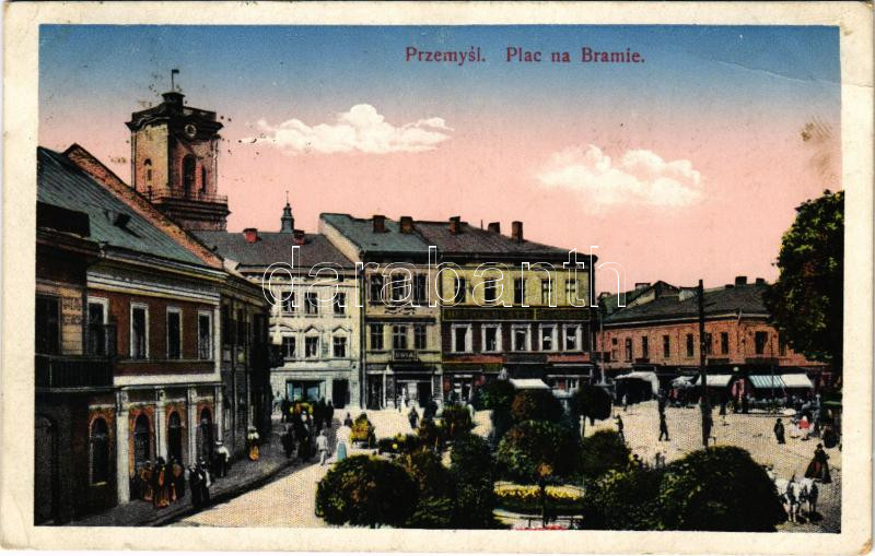 Leírás: 1916 Przemysl, Plac na Bramie / square, market, shop of Henryk Blatt (EB)