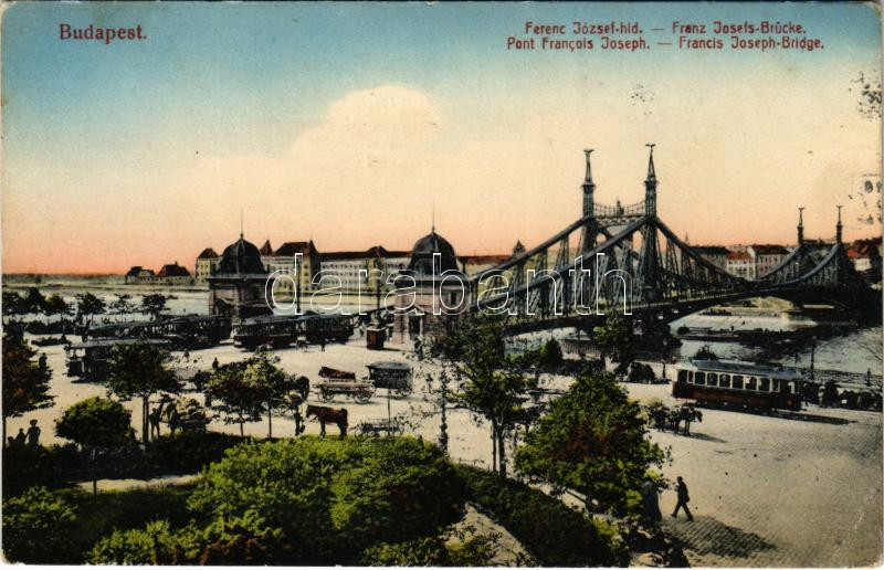 1916 Budapest, Ferenc József híd, villamos, lovaskocsi. "Taussig&... https://www.darabanth.com/hu/472-Gyorsarveres/472.0/Kepeslapok/Magyarorszag~1500006/1916-Budapest-Ferenc-Jozsef-hid-villamos-lovaskocsi-Taussig-38-EK~II3200140