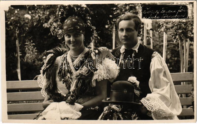 Leírás: 1926 Mezőkövesd, Habsburg József Ferenc főherceg és Anna főhercegnő matyó népviseletben, magyar folklór. photo (vágott / cut)