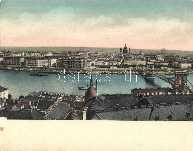 Leírás: Budapest, Lánchíd (valószínűleg panorámalap egy része / probably a piece of a panoramacard)(EK)