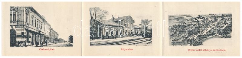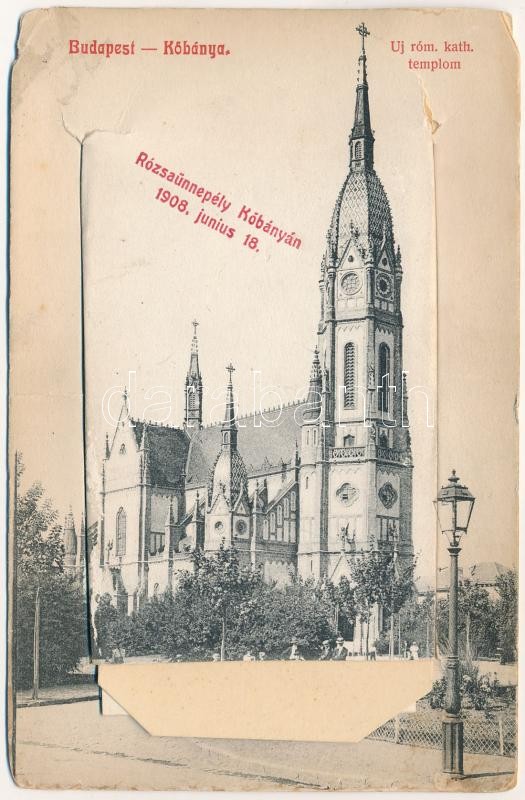 Leírás: Budapest X. Kőbánya, Új római katolikus templom. leporellolap 10 képpel. Merendiák K. kiadása "Rózsaünnepély Kőbányán 1908. június 18." (b)