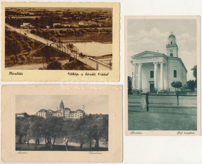Leírás: MEZŐTÚR - 3 db régi képeslap vegyes minőségben