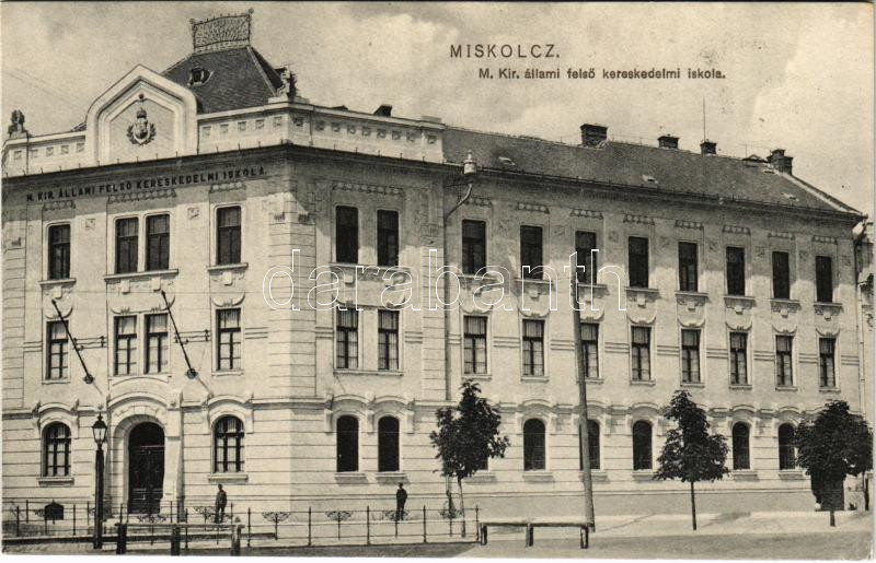 Miskolc, M. kir.állami felső kereskedelmi iskola. Ferenczi B. kiadása https://www.darabanth.com/hu/472-Gyorsarveres/472.0/Kepeslapok/Magyarorszag~1500006/Miskolc-M-kirallami-felso-kereskedelmi-iskola-Ferenczi-B-kiadasa~II3197514