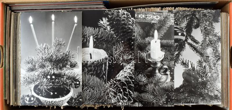 Kb. 1000 db MODERN vegyes üdvözlő képeslap dobozban, művész és reklám, sok postatiszta / Cca. 1000 modern greeting postcards in a box, some art and advertising