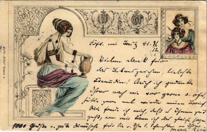 1900 Art Nouveau lady art postcard, Floral. Serie "Klio" Des... https://www.darabanth.com/hu/472-Gyorsarveres/472.0/Kepeslapok/Muveszlapok~1500068/1900-Art-Nouveau-lady-art-postcard-Floral-Serie-Klio-Dessin-6-azott-wet-damage~II3183805