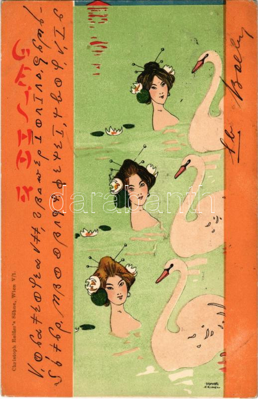1900 Geisha IX. Christoph Reisser's Söhne Wien. Asian style Art N... https://www.darabanth.com/hu/472-Gyorsarveres/472.0/Kepeslapok/Muveszlapok~1500068/1900-Geisha-IX-Christoph-Reissers-Sohne-Wien-Asian-style-Art-Nouveau-litho-s-Raphael-Kirchner-~II2905336