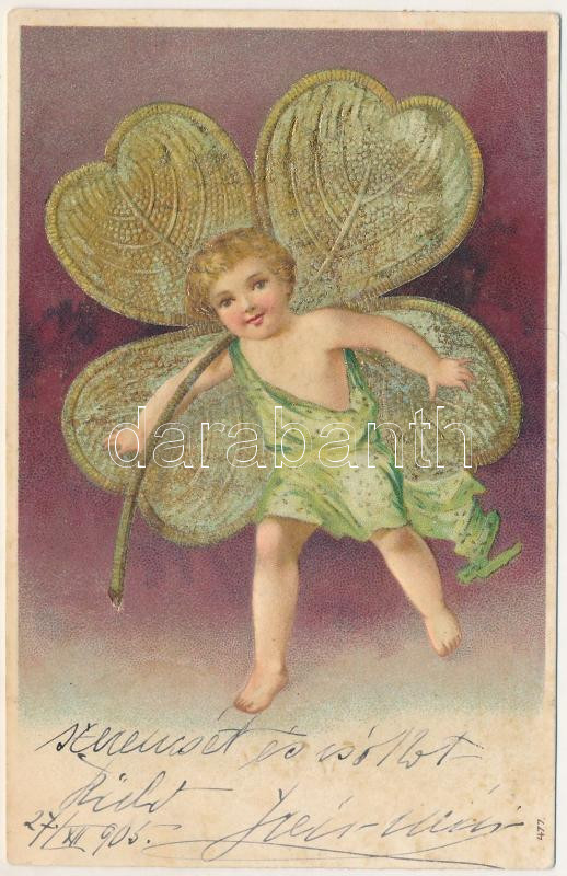 1905 Gyerek lóherével / Child with clover. Emb. litho (ázott / wet dam... https://www.darabanth.com/hu/472-Gyorsarveres/472.0/Kepeslapok/Muveszlapok~1500068/1905-Gyerek-loherevel-Child-with-clover-Emb-litho-azott-wet-damage~II3195595