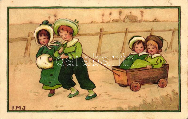 Children pulling a cart with children, M. Munk No. 654., litho, s: IMJ... https://www.darabanth.com/hu/472-Gyorsarveres/472.0/Kepeslapok/Muveszlapok~1500068/Children-pulling-a-cart-with-children-M-Munk-No-654-litho-s-IMJ-EK~II1332081