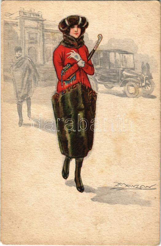 Leírás: Hölgy, automobil. Olasz művészlap / Lady, automobile. Italian art postcard. Anna & Gasparini 493-6. s: Mauzan (fl)