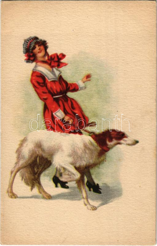 Leírás: Lady art postcard with dog. Amag O. 11.