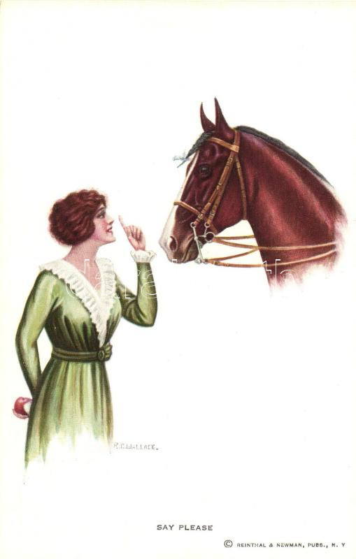 Leírás: 'Say please' / Lady with horses, Reinthal & Newman No. 188. s: R. D. Wallace