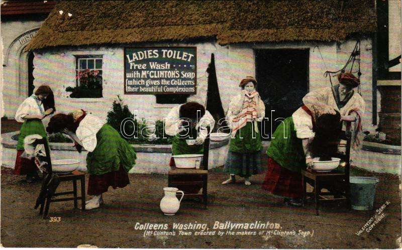 London, "Ballymaclinton" Colleens Washing. "Ladies Toilet. Free wash with McClinton's Soap" McClinton's Town erected by the makers of McClinton's Soap. Irish village (wet damage)