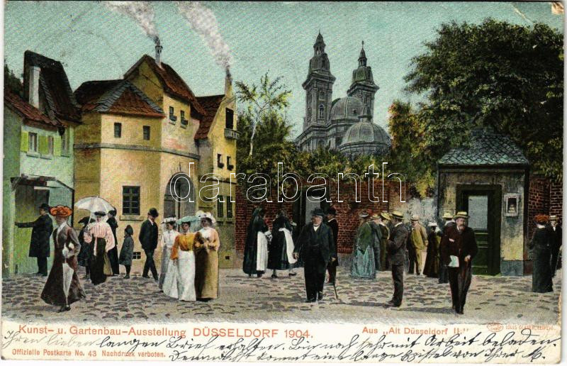 1904 Düsseldorf, Kunst und Gartenbau-Ausstellung, Aus Alt-Düsseldorf II. Offizielle Postkarte No. 43. / Art and Horticultural Exhibition, oldtown. Lottery ticket on the backside (EB)