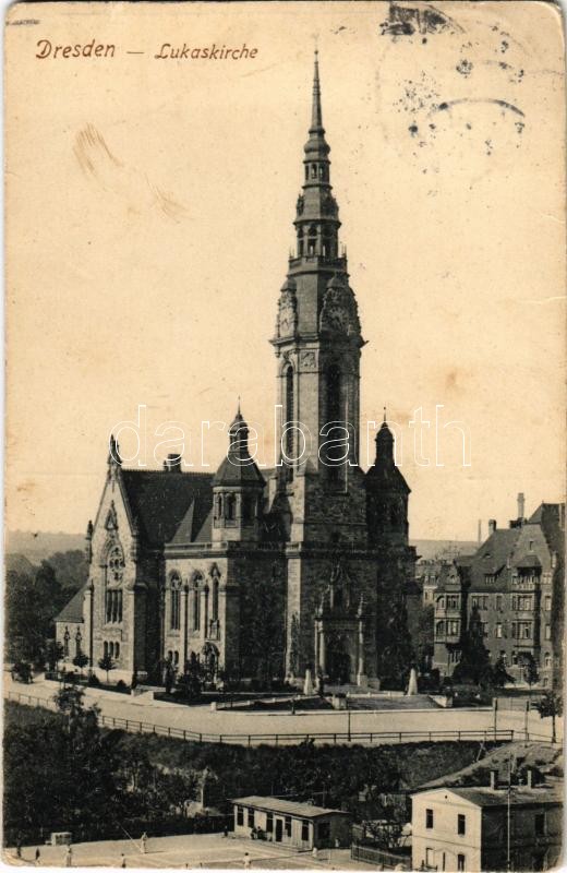 1910 Dresden, Lukaskirche / church (worn corners) https://www.darabanth.com/hu/472-Gyorsarveres/472.0/Kepeslapok/Nemetorszag~1500089/1910-Dresden-Lukaskirche-church-worn-corners~II2174040
