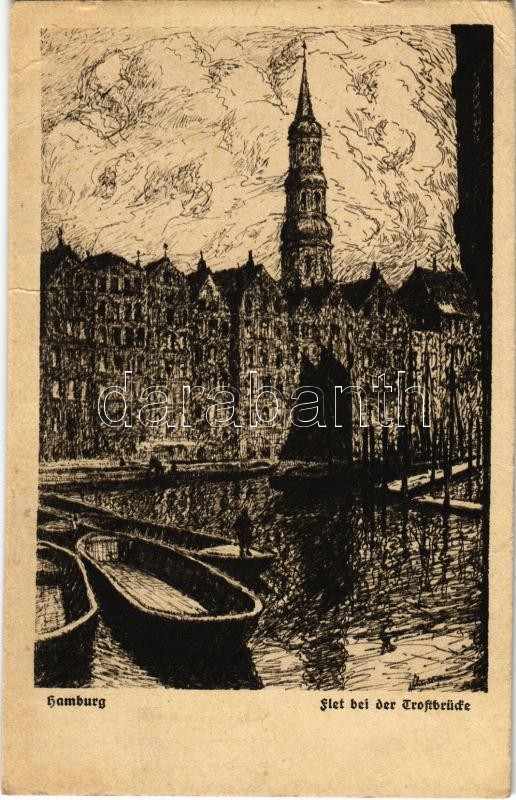 Hamburg, Flet bei der Trostbrücke / bridge, art postcard. Verlag Traut... https://www.darabanth.com/hu/472-Gyorsarveres/472.0/Kepeslapok/Nemetorszag~1500089/Hamburg-Flet-bei-der-Trostbrucke-bridge-art-postcard-Verlag-Trautmann-von-Seggern-Serie-100~II2173516