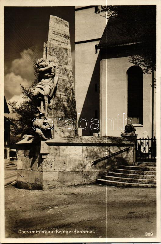 Oberammergau, Kriegerdenkmal / WWI war memorial statue https://www.darabanth.com/hu/472-Gyorsarveres/472.0/Kepeslapok/Nemetorszag~1500089/Oberammergau-Kriegerdenkmal-WWI-war-memorial-statue~II1334736
