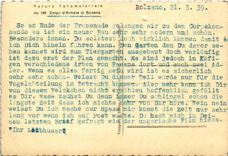 1939 Bolzano, Bozen (Südtirol); Corpo d'Armata / Army Corps https://www.darabanth.com/hu/472-Gyorsarveres/472.0/Kepeslapok/Olaszorszag~1500093/1939-Bolzano-Bozen-Sudtirol-Corpo-dArmata-Army-Corps~II3182829