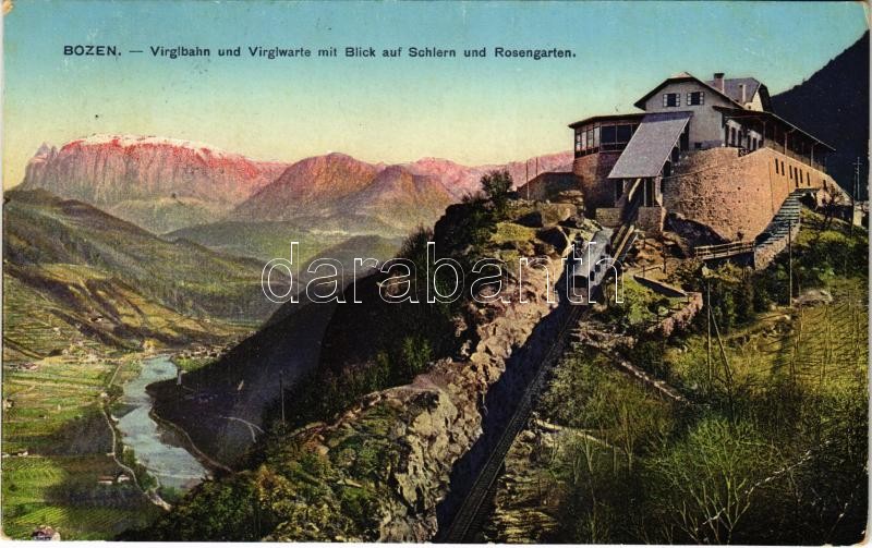 Bolzano, Bozen (Südtirol); Virglbahn und Virglwarte mit Blick auf Schl... https://www.darabanth.com/hu/472-Gyorsarveres/472.0/Kepeslapok/Olaszorszag~1500093/Bolzano-Bozen-Sudtirol-Virglbahn-und-Virglwarte-mit-Blick-auf-Schlern-und-Rosengarten-funicul~II2201568