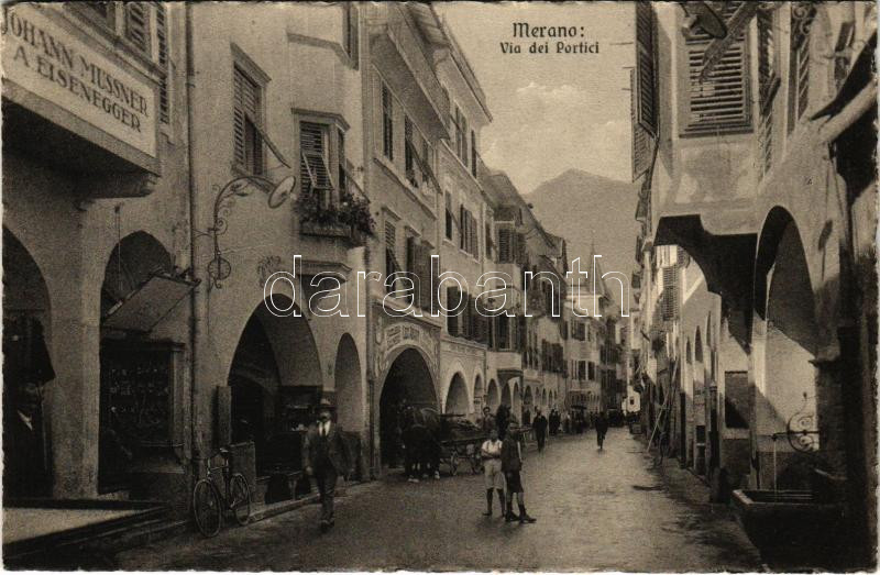 Merano, Meran (Südtirol); Via del Portici / street view, shops https://www.darabanth.com/hu/472-Gyorsarveres/472.0/Kepeslapok/Olaszorszag~1500093/Merano-Meran-Sudtirol-Via-del-Portici-street-view-shops~II3196522