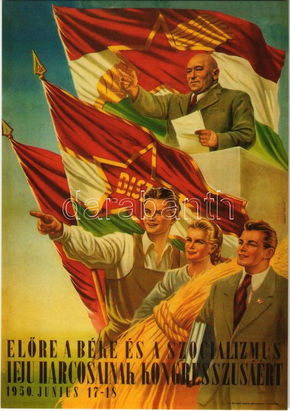 1950 Előre a béke és a szocializmus ifjú harcosainak kongresszusáért - Az egybeolvasztott ifjúsági szervezetek első közös kongresszusának plakátja, Rákosi s: Czeglédi-Bánhegyi - modern reprint