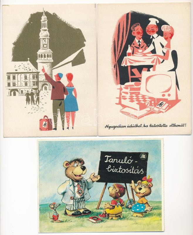 Leírás: 3 db modern magyar propaganda képeslap: Állami Biztosító