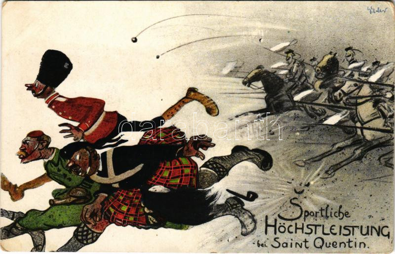 Leírás: Sportliche Höchstleistung bei Saint Quentin / anti-French mocking propaganda art postcard (Rb)