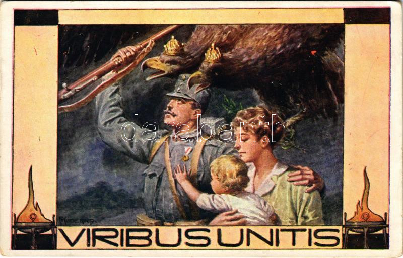 Viribus Unitis / WWI Austro-Hungarian K.u.K. military art postcard with Viribus Unitis propaganda. Offizielle Postkarte des Österreichischen Flottenvereines zu Gunsten der Kriegsfürsorge s: F. Kuderna (EK)