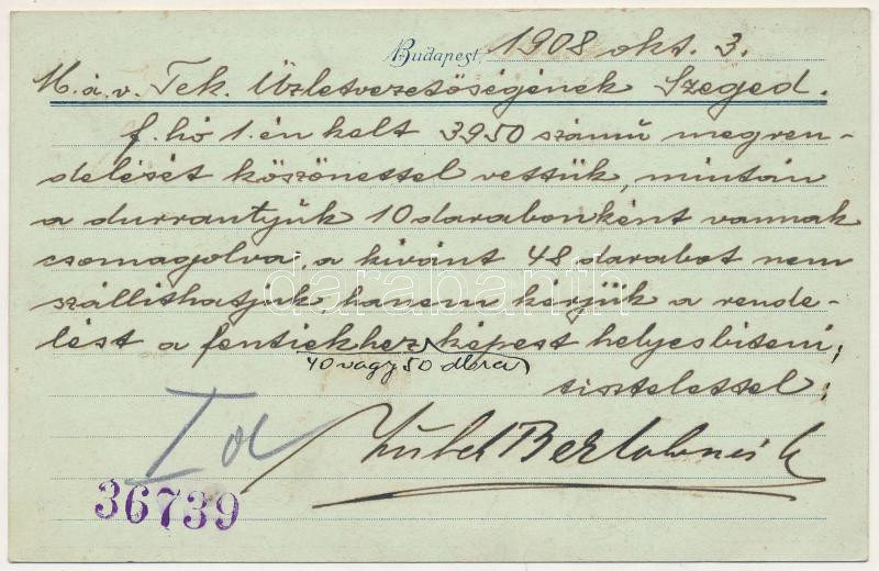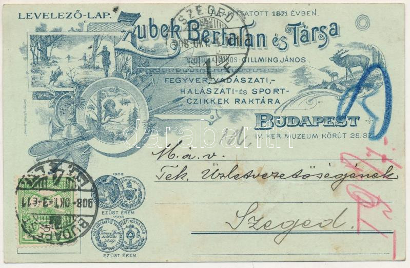 1908 Zubek Bertalan és Társa fegyver, vadászati, halászati és sportcikkek raktára. Budapest V. Múzeum körút 29. Hamburger és Birkholz Art Nouveau, floral, litho (fl)