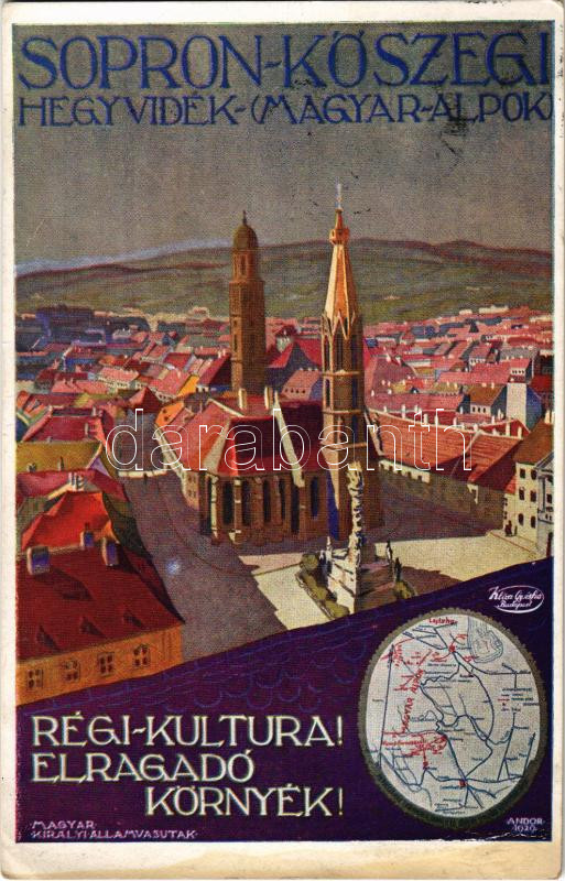 1932 Sopron-Kőszegi Hegyvidék (Magyar Alpok); A Magyar Királyi Államvasutak (MÁV) vasúti turisztikai reklám képeslapja, kiadja Klösz György és Fia / Hungarian State Railways tourism campaign advertisement s: Andor L. (EK)