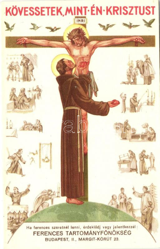 1946 "Kövessetek, mint én Krisztust" budapesti ferencesek re... https://www.darabanth.com/hu/472-Gyorsarveres/472.0/Kepeslapok/Reklam~1500076/1946-Kovessetek-mint-en-Krisztust-budapesti-ferencesek-reklamja-Franciscans-advertisement~II1243660