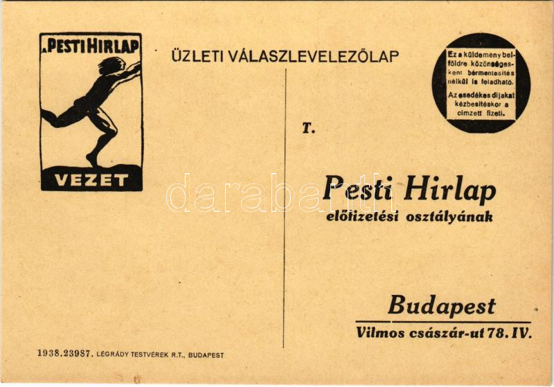 Pesti Hírlap napilap reklámja. Légrády Testvérek R.T. / Hungarian dail... https://www.darabanth.com/hu/472-Gyorsarveres/472.0/Kepeslapok/Reklam~1500076/Pesti-Hirlap-napilap-reklamja-Legrady-Testverek-RT-Hungarian-daily-newspaper-advertisement~II3199225