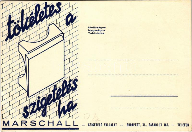 Tökéletes a szigetelés ha Marschall szigetelő vállalat. Budapest, Sasa... https://www.darabanth.com/hu/472-Gyorsarveres/472.0/Kepeslapok/Reklam~1500076/Tokeletes-a-szigeteles-ha-Marschall-szigetelo-vallalat-Budapest-Sasadi-ut-167-reklam-EB~II2970929