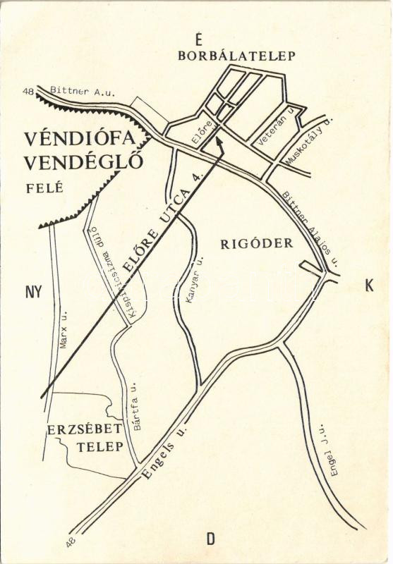 Véndiófa vendéglő térképes reklám képeslap. Pécs-Borbálatelep, Előre u... https://www.darabanth.com/hu/472-Gyorsarveres/472.0/Kepeslapok/Reklam~1500076/Vendiofa-vendeglo-terkepes-reklam-kepeslap-Pecs-Borbalatelep-Elore-u-4-Cegt-Bodo~II2744461